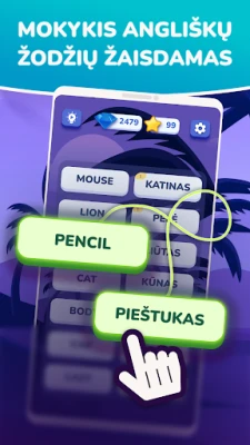 Pamirškite nuobodžius vadovėlius ir ilgus žodynų sąrašus! Mokytis anglų kalbos žodžių gali būti kur kas smagiau ir efektyviau. Mes žinome, koks varginantis gali tapti nuolatinis „kalimas", todėl sukūrėme unikalų būdą praturtinti jūsų žodyną žaidžiant. Ši programėlė paverčia anglų kalbos mokymąsi tikru malonumu, padedančiu nepastebimai įsiminti šimtus naujų daiktavardžių, veiksmažodžių ir būdvardžių.