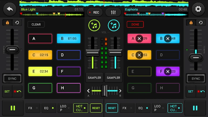 „Rythmix DJ – DJ mikseris" yra tikras DJ ir muzikos maišytuvas, leidžiantis remiksuoti dainas, kurti muziką ir įrašyti mišinius. Naudokite garso efektus, ekvalaizerį ir žemų dažnių stiprintuvą. Lengvai pritaikykite savo mišinius su galingais įrankiais, efektais ir kilpomis.