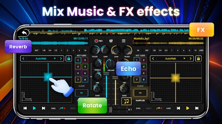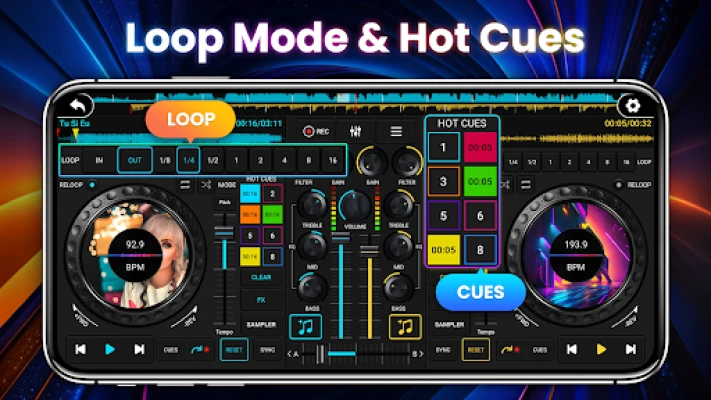 Atraskite naują muzikos kūrimo dimensiją su DJ muzikos mikseris Pro - Music Remix DJ, galinga virtualia DJ studija, sukurta tiems, kurie trokšta tobulos garso kontrolės. Ši programa paverčia jūsų įrenginį autentiška didžėjaus pultu, leidžiančia vienu metu maišyti ir perkurti dvi dainas, sujungiant jas į nuostabias kompozicijas. Mėgaukitės sklandžia, be jokių trukdžių patirtimi, kurioje dominuoja 3 juostų EQ maišytuvas ir galingas žemųjų dažnių stiprintuvas, suteikiantys jūsų muzikai nepaprasto gilumo ir energijos. Čia kiekvienas mygtukas ir slankiklis atspindi tikro pulto valdymą, užtikrinant itin interaktyvią ir įtraukiančią patirtį.