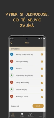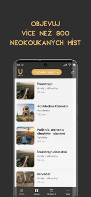 Naršymas aplikacijoje "Nuostabios Vietos" yra intuityvus ir patogus. Atraskite naujas vietas lengvai, naudodami paiešką pagal kategorijas, tokias kaip apžvalgos bokštai, griuvėsiai, vėjo malūnai ar karjerai, arba filtruodami pagal konkrečius regionus. Interaktyvus žemėlapis, paremtas Mapy.cz platforma, padės vizualizuoti kelionės maršrutą, o galimybė peržiūrėti vietas pagal aukštos kokybės profesionalias nuotraukas įkvėps naujiems nuotykiams. Asmenizuokite savo patirtį: žymėkite aplankytas vietas, saugokite mėgstamas, gaukite patarimus išvykoms su vaikais, vežimėliais, augintiniais ar net pritaikytus neįgaliesiems. Kiekvienai vietai rasite išsamią informaciją, įskaitant duomenis apie įėjimo mokesčius ir darbo laiką, papuoštą nuostabiais Čekijos fotografų kadrais.